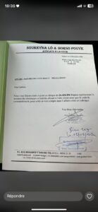 Les avocats de Barthélémy Dias ont confirmé avoir procédé à l’envoi d’un chèque d’un montant de 25 000 000 FCFA dans le cadre de l’exécution de la décision de justice relative à l’affaire Ndiaga Diouf et correspondant aux dommages et intérêts fixés par la justice.