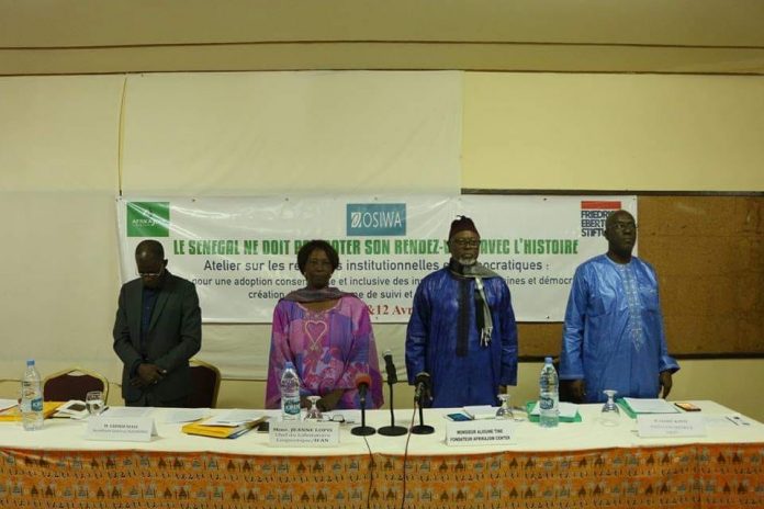Aliou Tine a fait observer ce matin une minute de silence à la mémoire du journaliste MomarSeyniNdiaye à l’Atelier sur les réformes institutionnelles et démocratiques organisé par AfrikajomCenter en partenariat avec OSIWA et Friedrich-Ebert-Stiftung Bureau Sénégal.