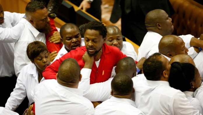 Le ton est monté. Il y a eu des échanges de coups. Et les 25 députés des Combattants pour la liberté économique (EFF) ont été violement expulsés de l’hémicycle. Après quoi, tous les députés de l’opposition ont quitté la Chambre.