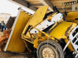 Kédougou : Un accident spectaculaire, le chauffeur de camion coincé sous un pont