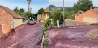 Extraordinaire: Un torrent de vin rouge inonde un village au Portugal