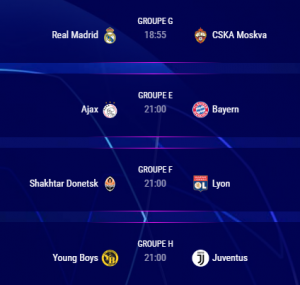 La dernière journée des phases de groupe de la champions league 2018/2019 se jouent depuis hier avec la qualification de Paris, de Liverpool dans la poule de la mort et le Napoli qui rejoigne la league europa et d’autres qualifications, ce soir aussi se dérouleront des rencontres choc.