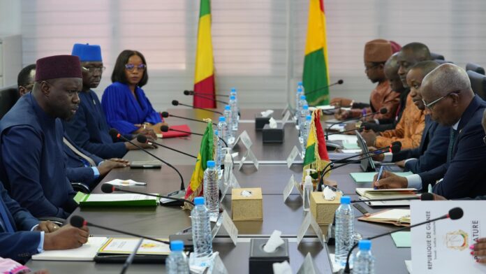 Arrivé hier à Conakry, le Premier ministre Ousmane Sonko a entamé ce lundi 2 juin 2025 au Palais de la Colombe, siège du gouvernement guinéen, une séance de travail avec son homologue Amadou Oury Bah.