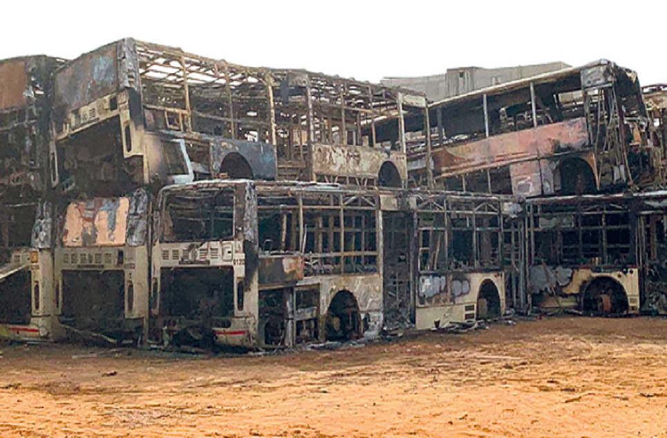 Avec trois bidons d’essence de 20 litres chacun, ils ont incendié 101 bus en stationnement en raison de pannes, en attendant leur remise en service. Selon le responsable du parc, les assaillants ont également mis le feu à une citerne de carburant et à des bureaux sur place.
