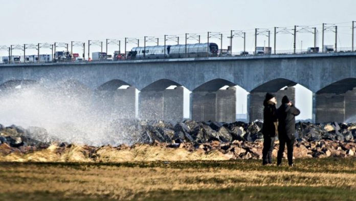 L’accident s’est produit à 7 h 30 locales – 6 h 30, temps universel – sur le pont du Grand Belt qui relie l’île de Seeland, où se situe la capitale Copenhague, à celle de Fionie. Le pont était alors balayé par des vents violents.