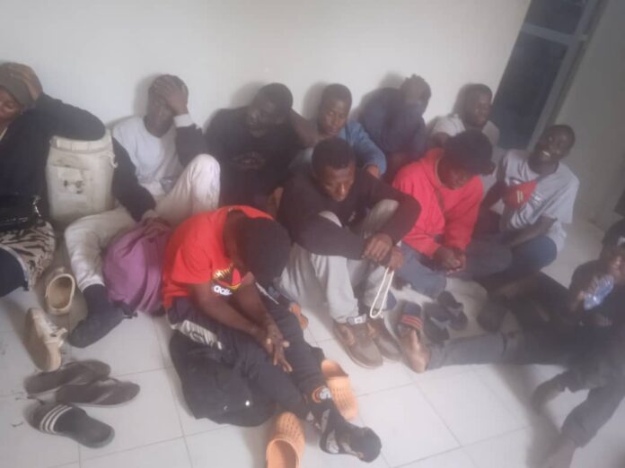 Ils sont 13 de nationalité ghanéenne et 04 ivoiriens candidats à l’immigration clandestine. Parmi eux trois femmes.  Interrogés ils ont déclaré qu’ils viennent  de Mbour pour les uns ,de Thiès  et de Kaolack pour les autres . Ils voulaient rallier le village de Ndangane Sambou dans la commune de fimela ,le point de regroupement pour clandestins.