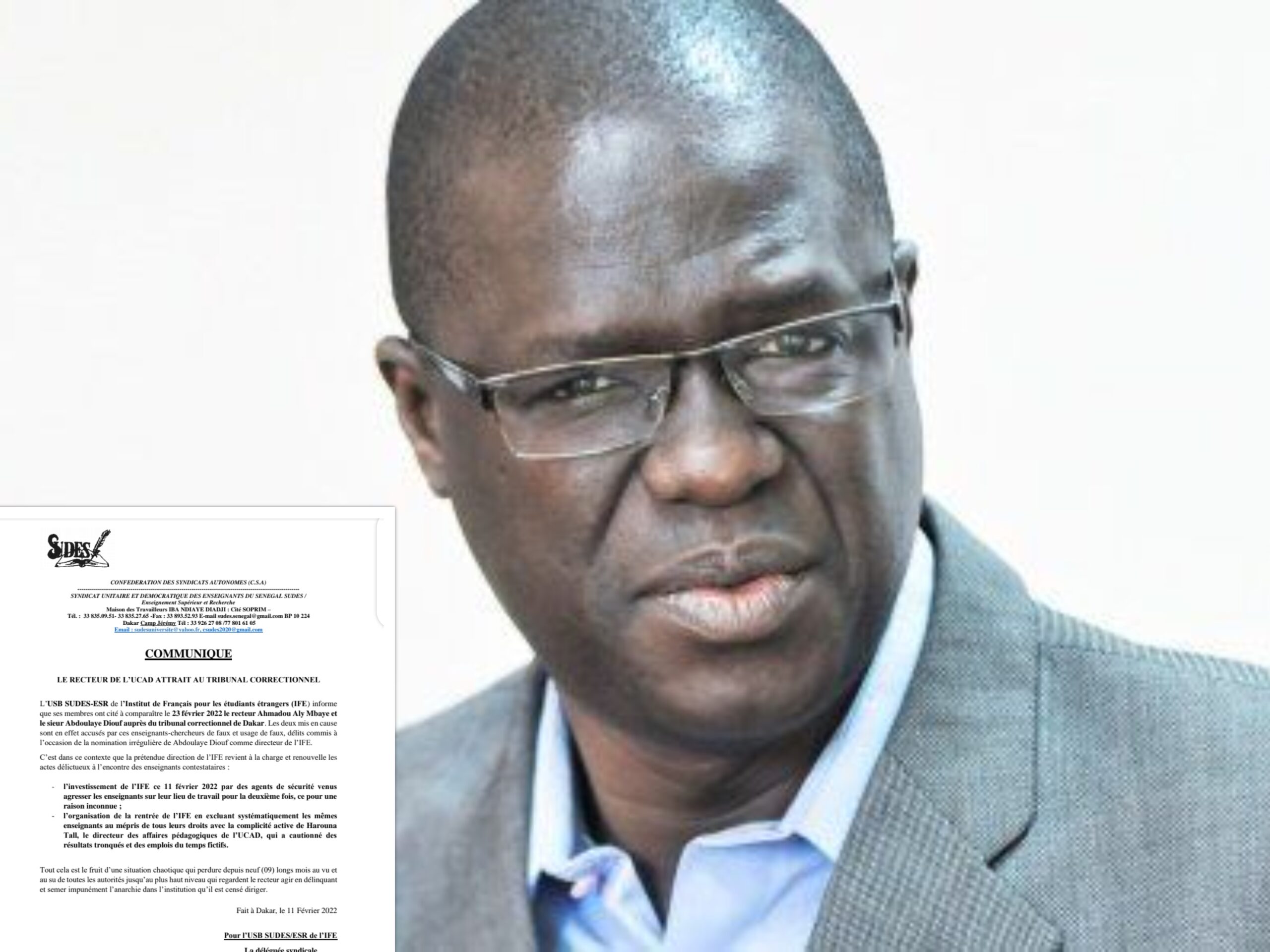 Les membres de l’USB Sudes de l’Institut français pour les étudiants étrangers (IFE) ont cité à comparaître le 23 février 2022, le Recteur Ahmadou Aly Mbaye et Abdoulaye Diouf auprès du tribunal correctionnel de Dakar.