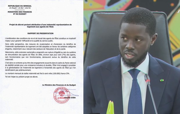 Le président Bassirou Diomaye Diakhar Faye signe un décret pour réduire les inégalités salariales dans la fonction publique Le gouvernement du Sénégal a ainsi franchi une étape importante dans sa politique de justice sociale avec la signature. C’est ce 7 janvier 2026 que le décret n° 2026-06 généralisant l’indemnité représentative de logement à l’ensemble des agents de l’État a été publié. Désormais, tous les fonctionnaires et agents non fonctionnaires, qui ne bénéficiaient pas jusqu’ici de cette allocation, percevront une indemnité mensuelle de 100 000 francs CFA nets d’impôts.