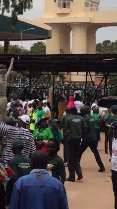 Mais, dès les premières heures de cette matinée, les supporters de l’APR ont envahi la Cour Suprême et scandé leur victoire, invitant “le Sénégal à s’occuper de ses propres affaires” et à laisser “le sort de la Gambie entre les mains des fils de la Gambie qui ont choisi Yahya Jammeh.” Constitués de jeunes habillés en vert, la couleur du parti de Yahya Jammeh, ces militants ont déclaré leur détermination à soutenir Alahadji Doctor jusqu’au bout.