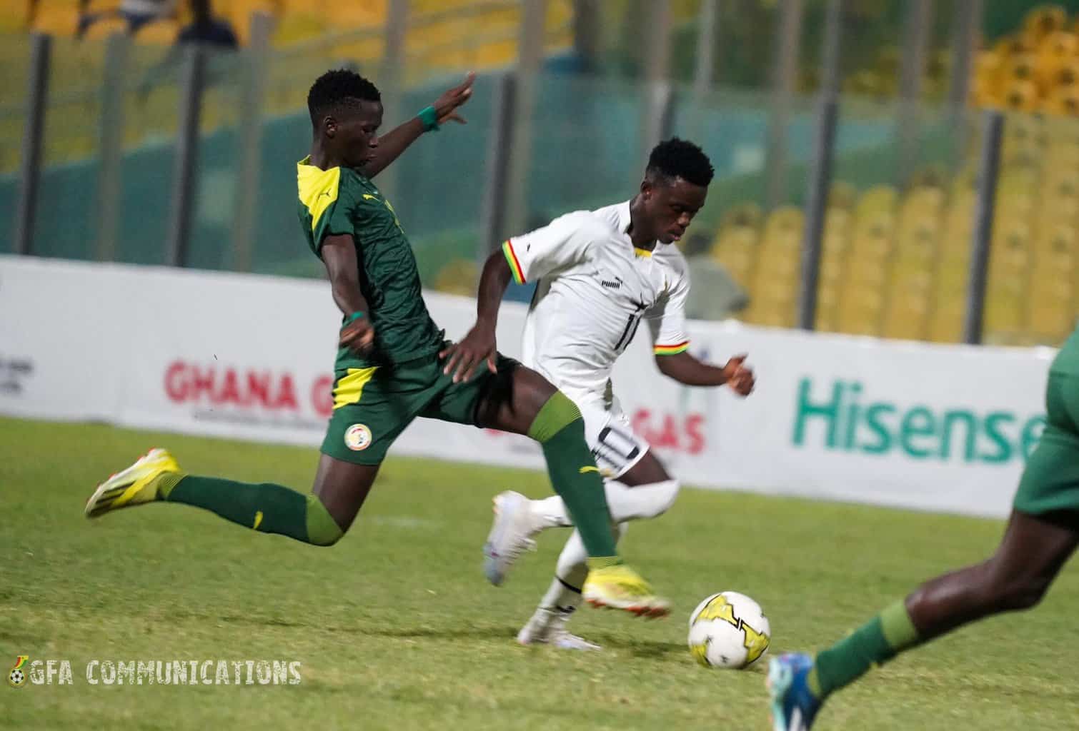 Les partenaires de Serigne Fallou Diouf n’ont jamais su imposer leur propre rythme. Les Black Satellites ont d’emblée maîtrisé leur sujet et ont su se procurer quelques opportunités en début de rencontre, à l’image d’une volée d’un Jerry Afriyie (7e) qui a provoqué une sortie autoritaire de Prince Hally Gueye (9e). Souvent pris au dépourvu par la vitesse des Ghanéens, la défense sénégalaise se sauvait de justesse (15e, 33e, 39e).