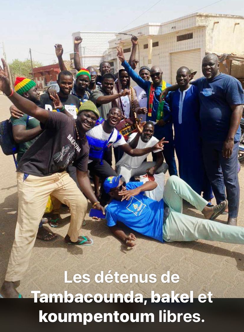 Après 9mois de détentions, les 41 détenus politiques de Tambacounda, Bakel, Koumpentoum qui viennent d’être libérés comme ce fut la semaine dernière pour ceux de la plupart des maisons d’arrêt de Dakar ainsi que de Sébikotane. En somme, plus de 500 détenus politiques ont été libérés.