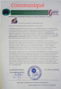 C’est à travers un communiqué daté et signé le 10 octobre 2024 que le mouvement des jeunes autonomes ( MNJAS ) dirigé par Ibrahima Sory Diallo, coordonnateur dudit mouvement et par ailleurs ex coordonnateur national des agents d’appui forestier du Xeyu Ndaw Yi, a manifesté son soutien sans condition au parti Pastef en vu des élections législatives prochaines.