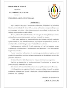 C’est à travers un communiqué publié ce dimanche que le bureau exécutif de l’UMS a déploré l’attaque de ses membres par le parti démocratique Sénégalais. “un groupe parlementaire d’un parti politique a cru devoir s’attaquer ouvertement à deux éminents membres de cette haute juridiction pour des soupçons de corruption et de conflit d’intérêt”.