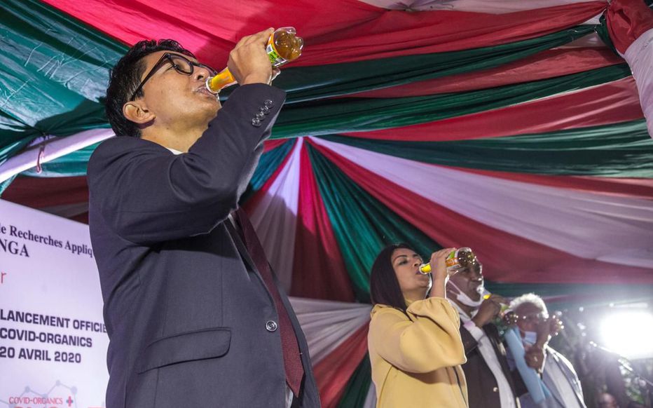 ANDRY RAJOELINA est de la trempe des hommes d’État n’ayant pas la peur au ventre ; ce qui l’a poussé à faire confiance à l’expertise locale, en particulier au Docteur congolais *JEROME  MUNYANGI*. Le génial MUNYANGI, auteur du protocole éminemment scientifique qui aboutit au *TAMBAVY COVID ORGANIGS*  :  tisane biologique à base de plantes traditionnelles dont  *ARTEMISIA,* conçue avec toutes les techniques de la science dite conventionnelle, un remède préventif et curatif du covid  19, cette pandemie  qui tue et ruine le monde.