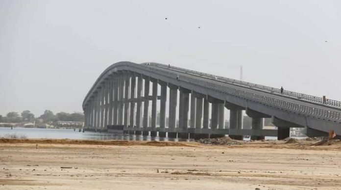Long de 1300 mètres, il enjambe le bras de mer le Saloum. La durée des travaux est de 48 mois, selon un document remis à la presse par l’AGEROUTE.