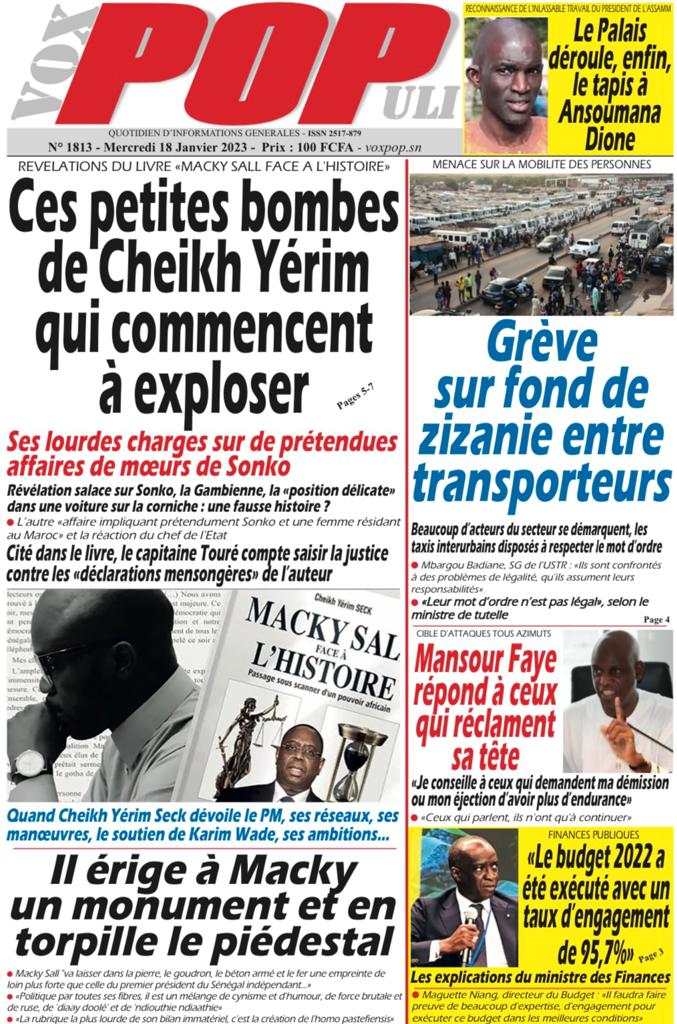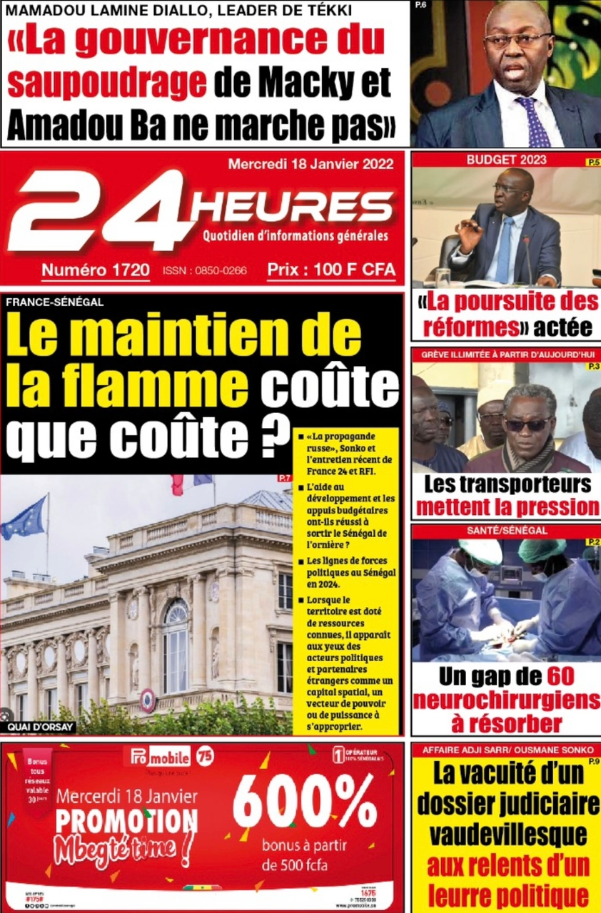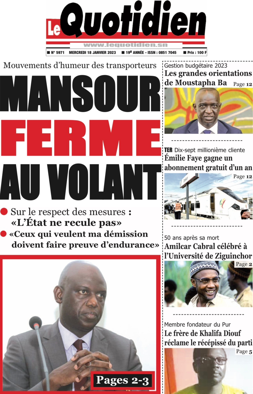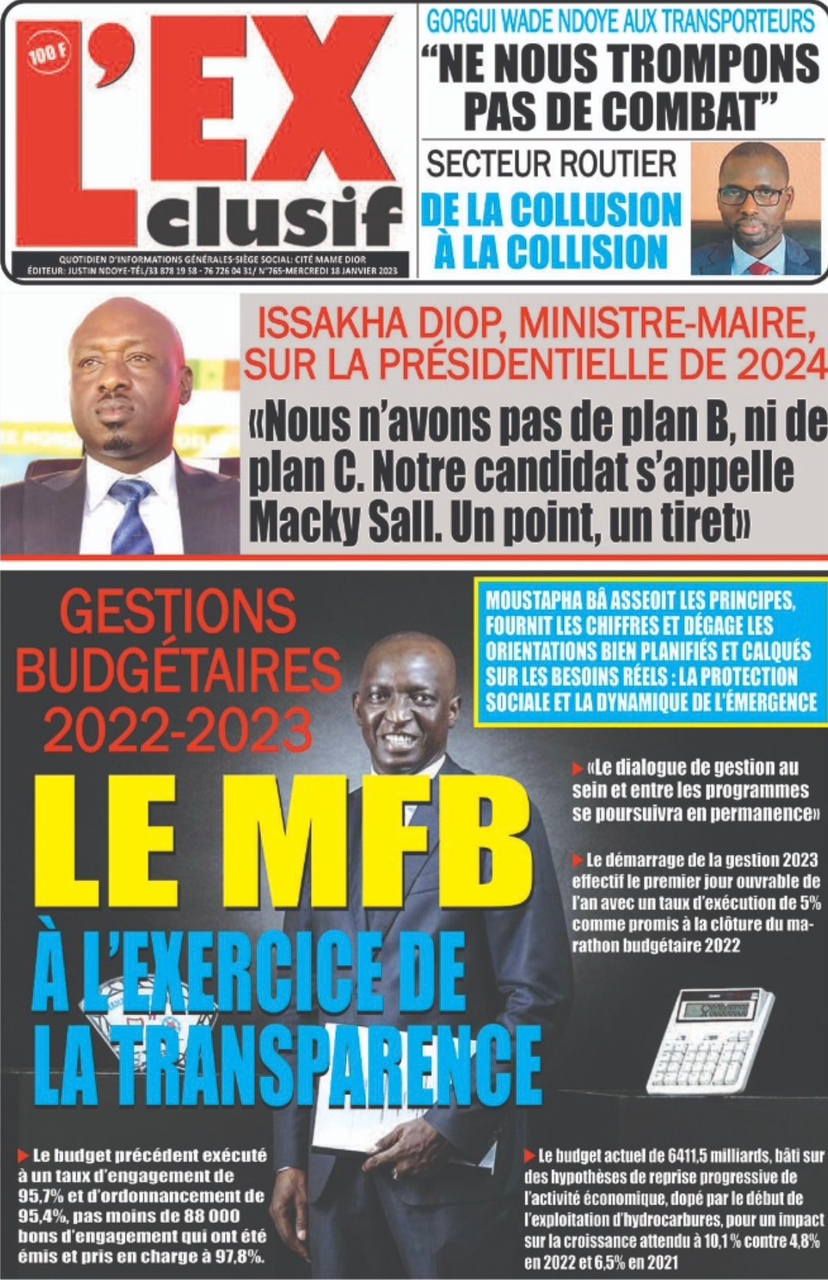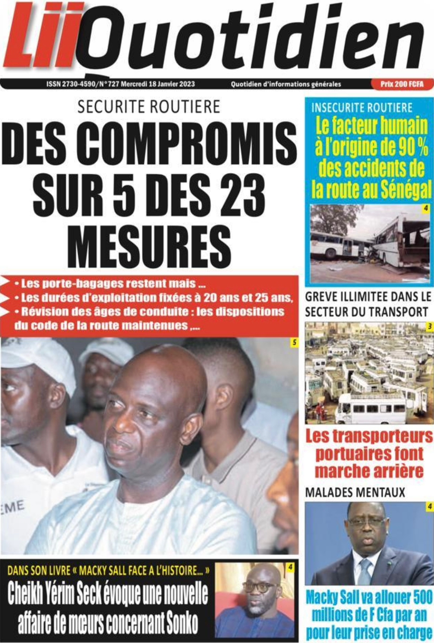 A LA UNERevue de presseSENEGALSports Ma revue de Presse : Retrouvez la Une des journaux parus ce mercredi 18 janvier 2023 By Alassane Dramane - 18 janvier 2023 0 652 Share on Facebook Tweet on Twitter Tous les matins, retrouvez la revue des titres qui font l’actualité du jour sur votre site Kéwoulo. Cette revue de presse est offerte par Ma Revue de Presse. Merci de défiler vers les bas pour appercevoir les journaux….