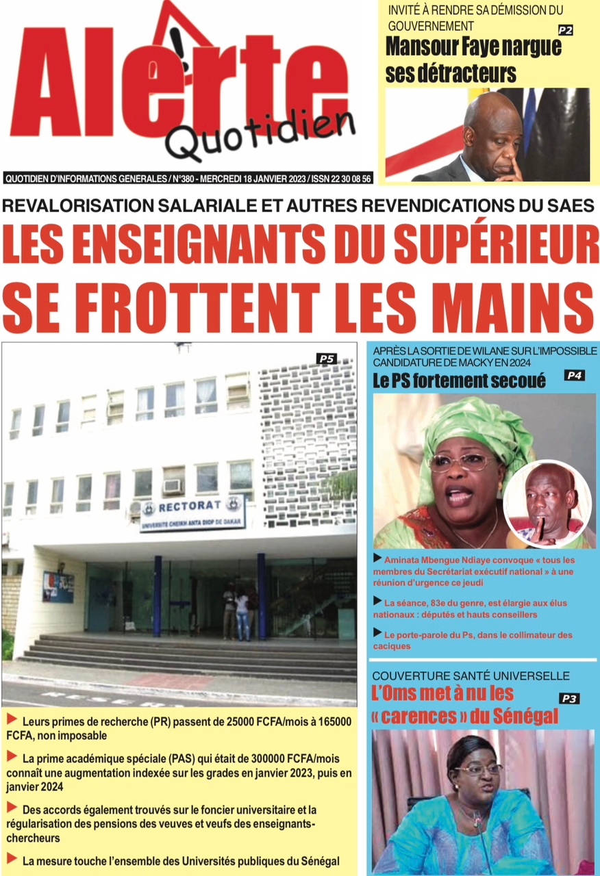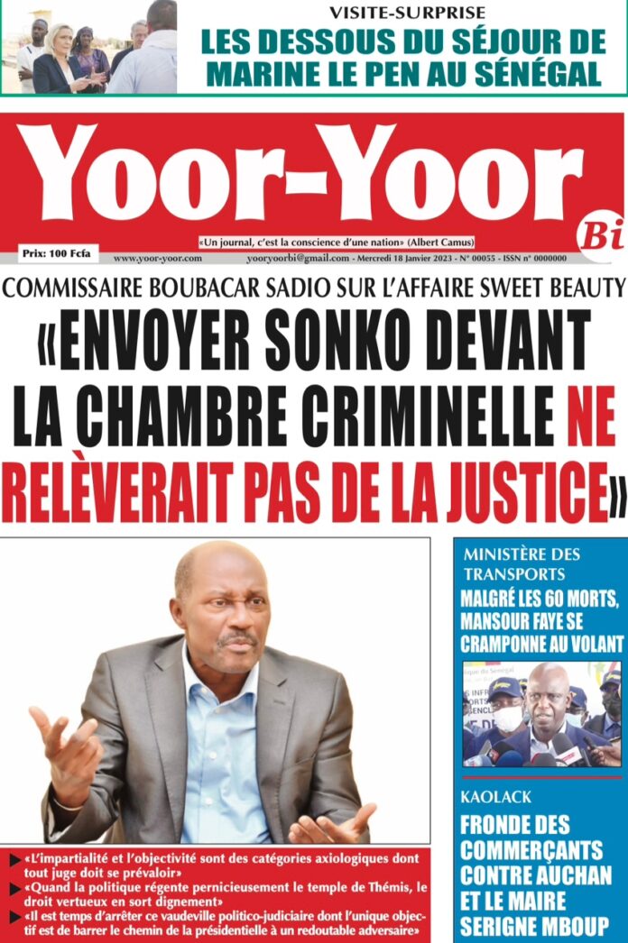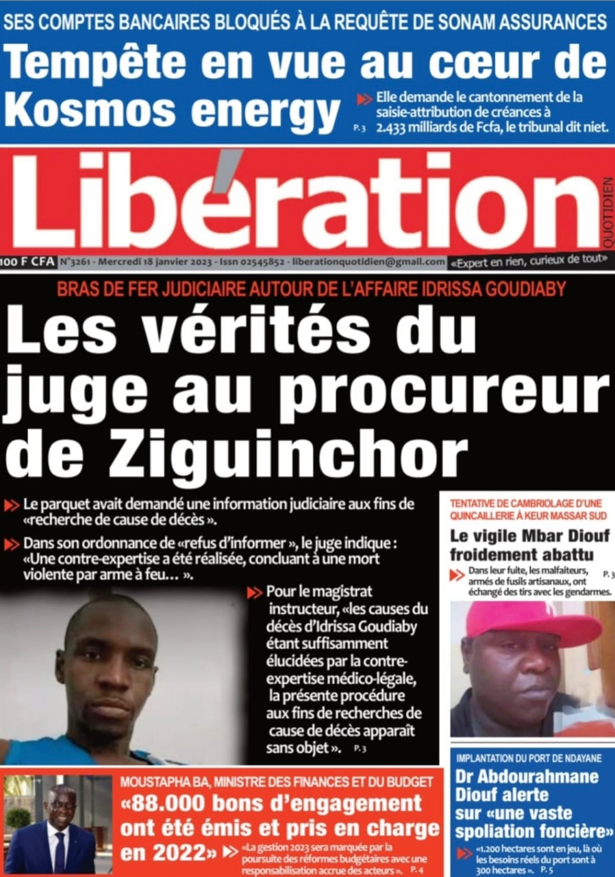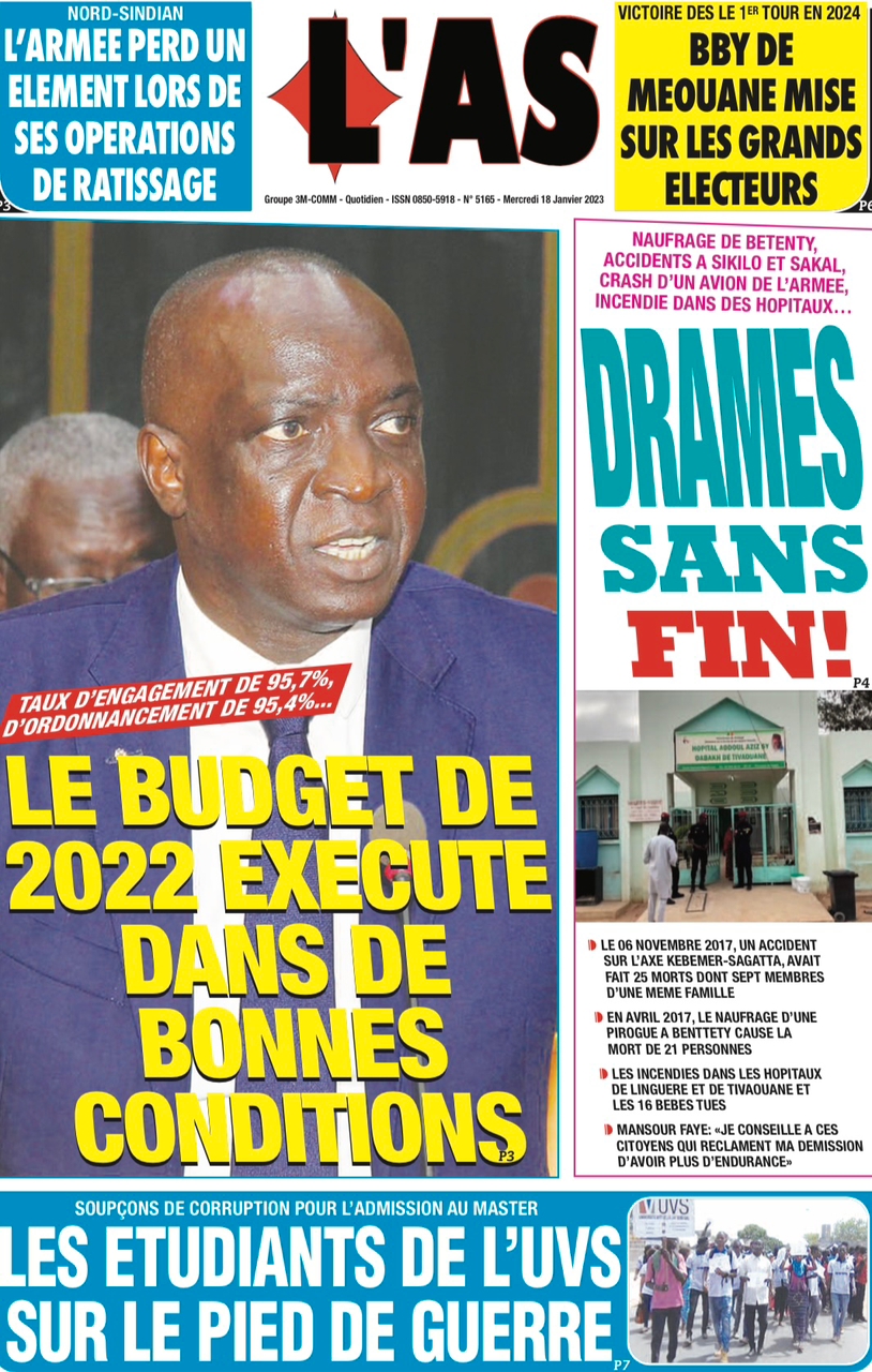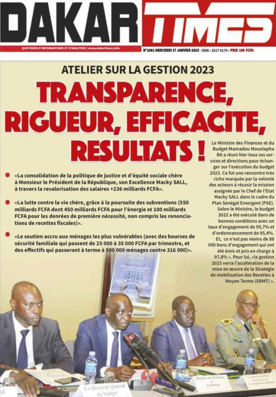 A LA UNERevue de presseSENEGALSports Ma revue de Presse : Retrouvez la Une des journaux parus ce mercredi 18 janvier 2023 By Alassane Dramane - 18 janvier 2023 0 652 Share on Facebook Tweet on Twitter Tous les matins, retrouvez la revue des titres qui font l’actualité du jour sur votre site Kéwoulo. Cette revue de presse est offerte par Ma Revue de Presse. Merci de défiler vers les bas pour appercevoir les journaux….