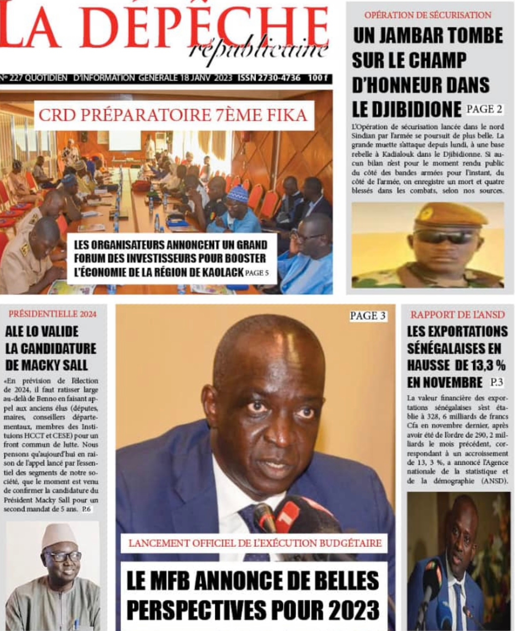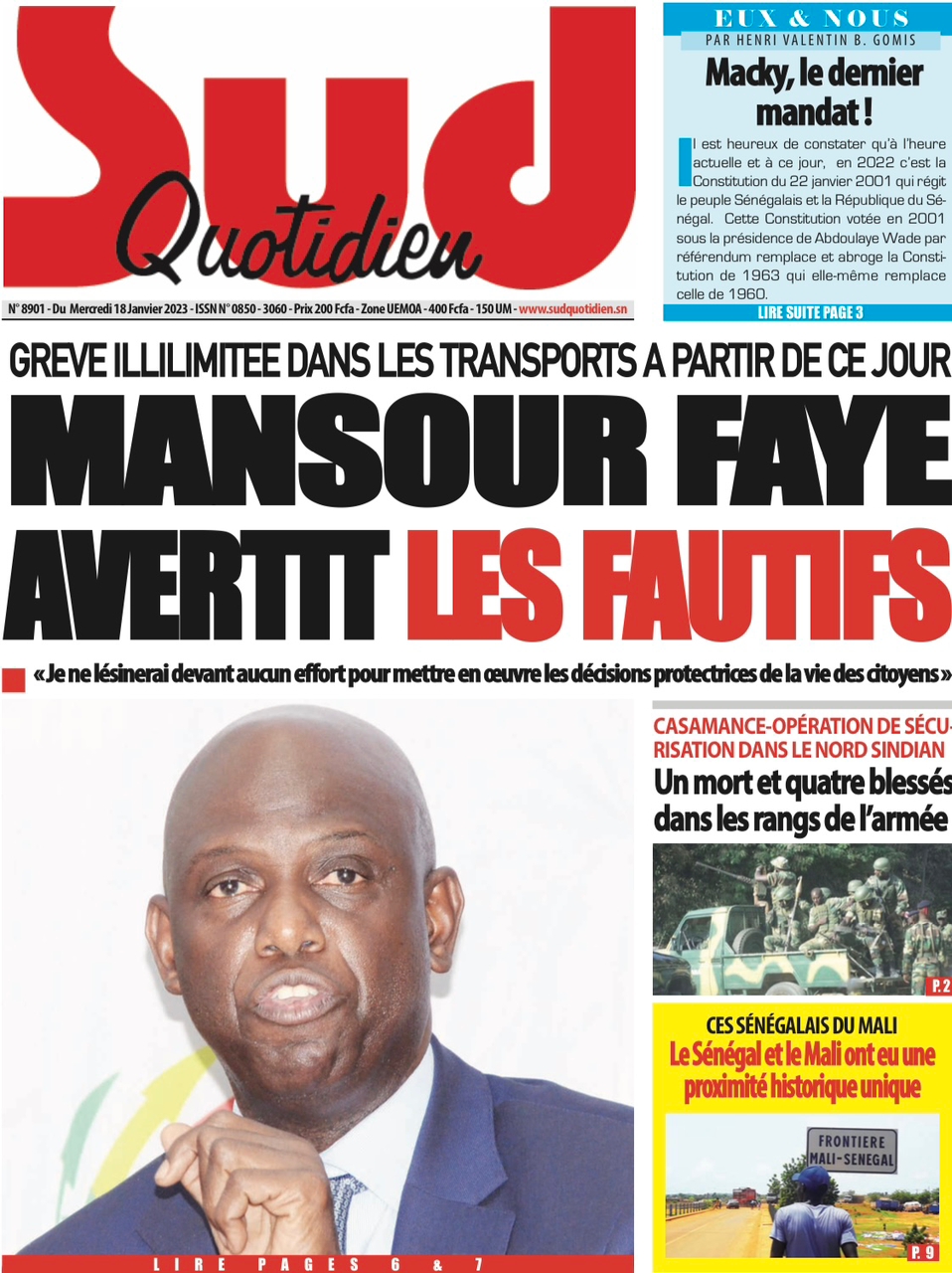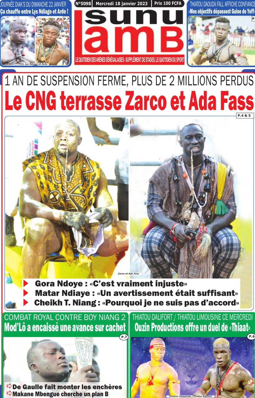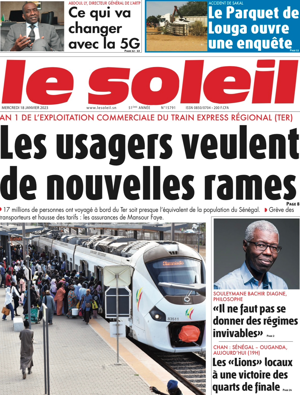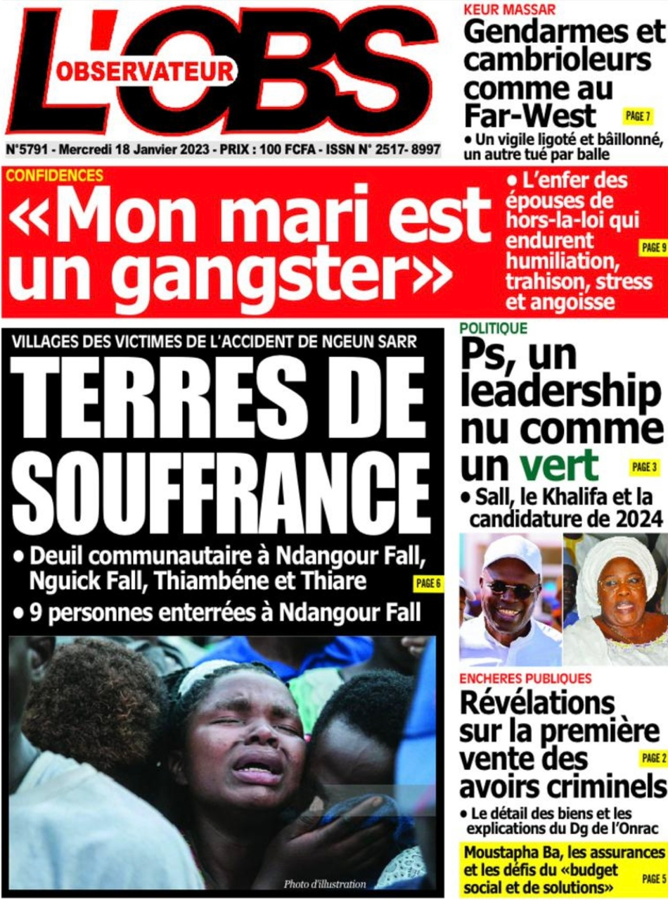 A LA UNERevue de presseSENEGALSports Ma revue de Presse : Retrouvez la Une des journaux parus ce mercredi 18 janvier 2023 By Alassane Dramane - 18 janvier 2023 0 652 Share on Facebook Tweet on Twitter Tous les matins, retrouvez la revue des titres qui font l’actualité du jour sur votre site Kéwoulo. Cette revue de presse est offerte par Ma Revue de Presse. Merci de défiler vers les bas pour appercevoir les journaux….