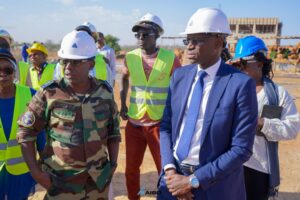 Le Directeur Général de AIBD SA M. Abdoulaye DIEYE satisfait du niveau d’exécution des travaux. Le Directeur Général de l’Aéroport international Blaise Diagne, M. Abdoulaye DIEYE et le Chef d’Etat-Major de l’Armée de l’Air, le Général de Brigade Papa Souleymane SARR ont visité, ce jeudi 12 janvier 2023, les chantiers de l’Académie Internationale des Métiers de l’Aviation Civile (AIMAC).
