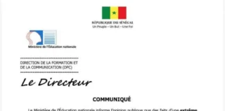 Le Ministère de l’Éducation nationale a informé l’opinion publique de faits d’une extrême gravité signalés dans l’Académie de Pikine-Guédiawaye. Dans un communiqué rendu public,...