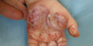 une mère plonge les mains de sa fille dans de l’eau...