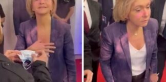 Valérie Pécresse aspergée de poudre rose en marge d’un débat