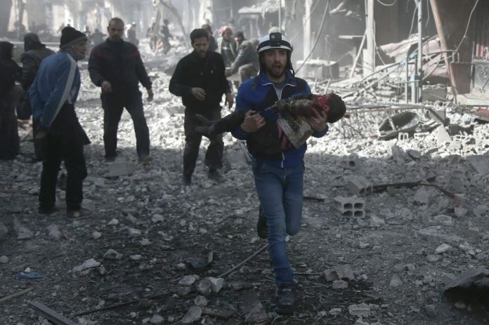 Selon le directeur de l’OSDH, «le régime bombarde intensément la Ghouta orientale en vue d’une offensive terrestre» et après avoir massé des renforts autour de la zone. Dans une morgue improvisée de la ville de Douma, un homme effondré, Nidal, pleurait près du corps sans vie de sa fille Farah. Dans les hôpitaux de fortune, des parents cherchaient désespérément leurs enfants, morts ou vivants. Un homme éclatait en sanglots en découvrant la dépouille de son nouveau-né posée sur une couverture, à côté d’une flaque de sang.