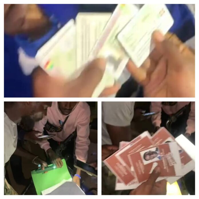 Joint au téléphone un jeune membre de la Jeunesse Patriotique du Sénégal section Ziguinchor confirme l’information. Notre interlocuteur précise qu’ils traversaient devant le foyer des jeunes de Halwar où ils ont aperçu un véhicule d’une immatriculation de la Guinée Bissau. Curieux d’en savoir plus, soudainement nous avons aperçu un individu sortir du foyer et qui parle au téléphone sur la situation de ces étrangers. C’est ainsi que nous sommes entrés à l’intérieur et nous y avons trouvé 15 personnes à l’intérieur environ 250 matelas, et nous avons réussi à récupérer 09 carte d’identité nationale biométrique CEDEAO indiquant des lieux de vote dit-il.