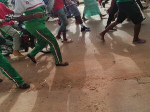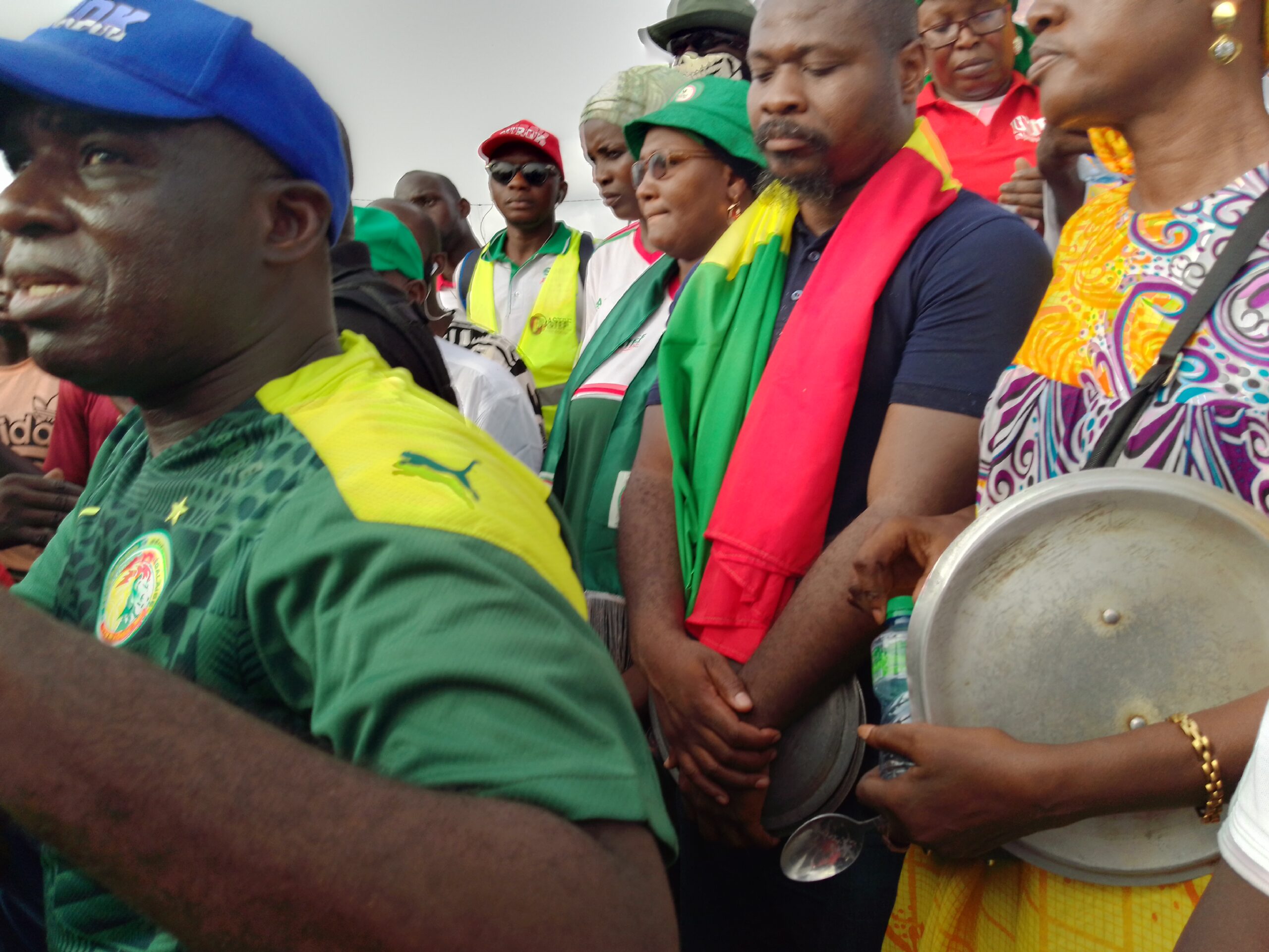 Cette caravane dirigée par le candidat et tête de liste de la coalition au niveau départemental, Guy Marius Sagna, habillé en tenue de combat: pantalon gin, chaussures plastiques, teeshirt Lacoste, le tout décoré par une écharpe aux couleurs nationale autour du cou et couvercles de marmite en main, a démarré au terrain Jatir pour prendre fin au rond point Aline Sitoé Diatta.